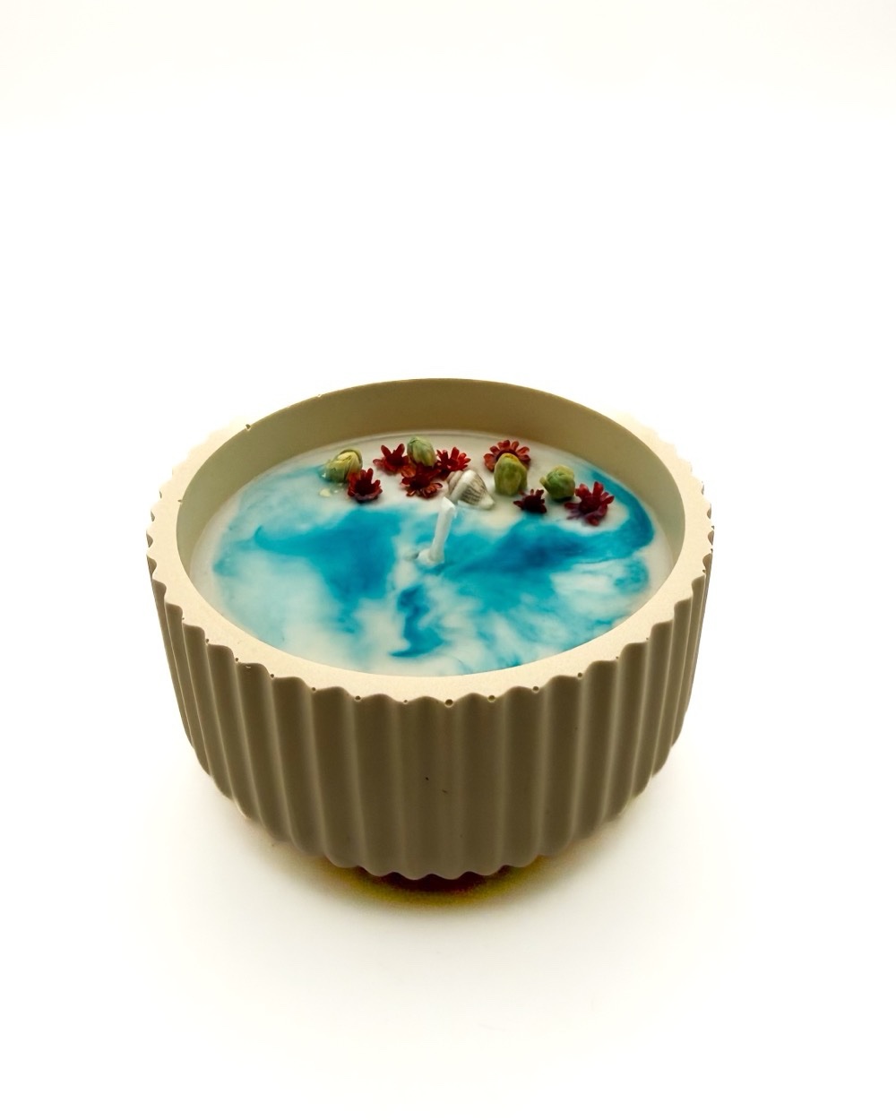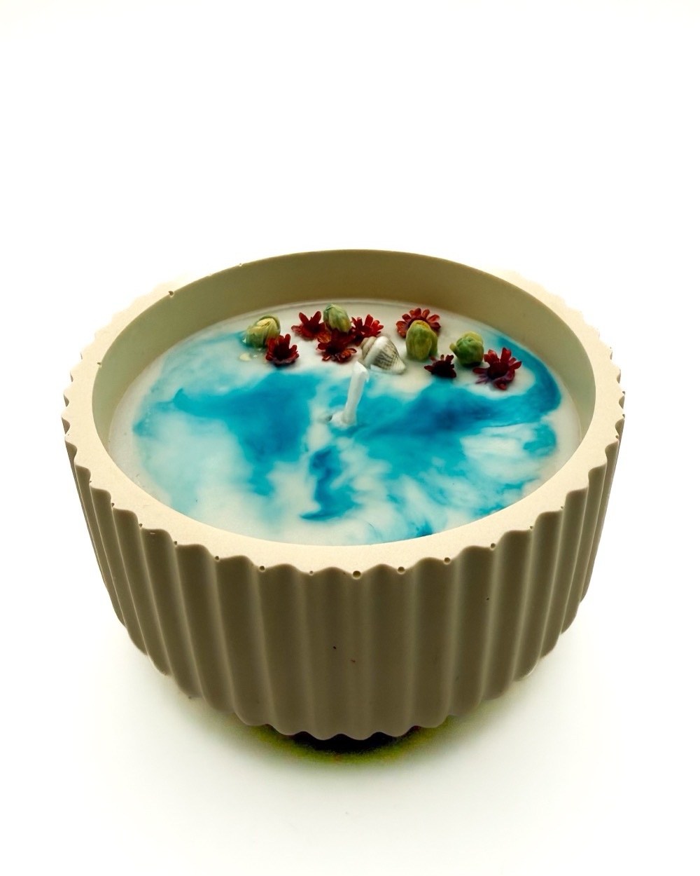 Coulées et décorées en cire 100% végétale et naturelle, avec un contenant fabriqué en Jesmonite, elles créent une ambiance chaleureuse et apportent une touche féerique à votre intérieur.