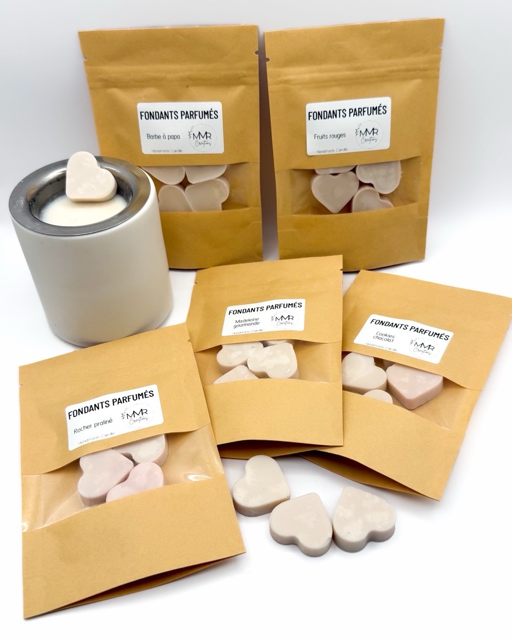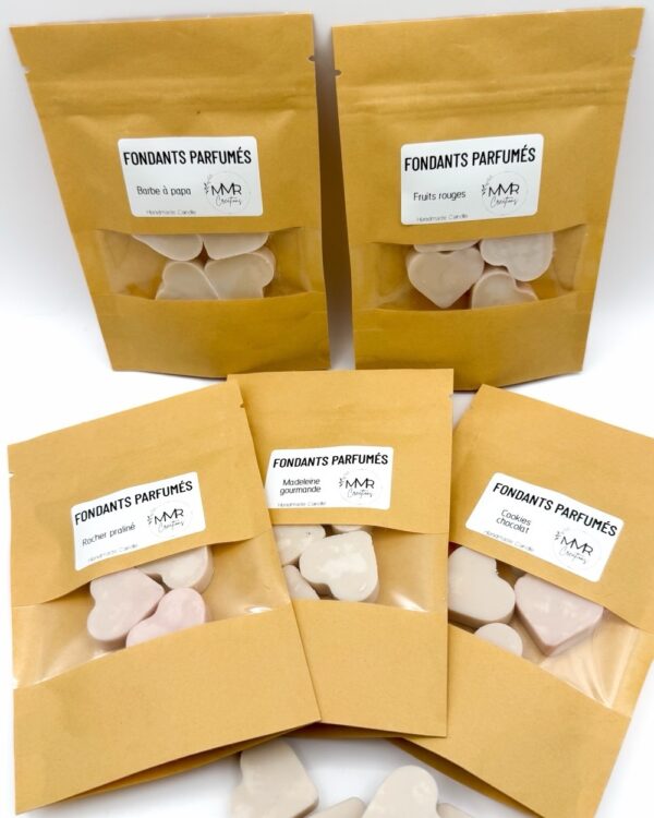 Optez pour ce coffret découverte qui vous permettra de découvrir les fondants parfumés (coulés à la main en cire 100% végétale et naturelle) avec 5 sachets de fondants de parfums différents :