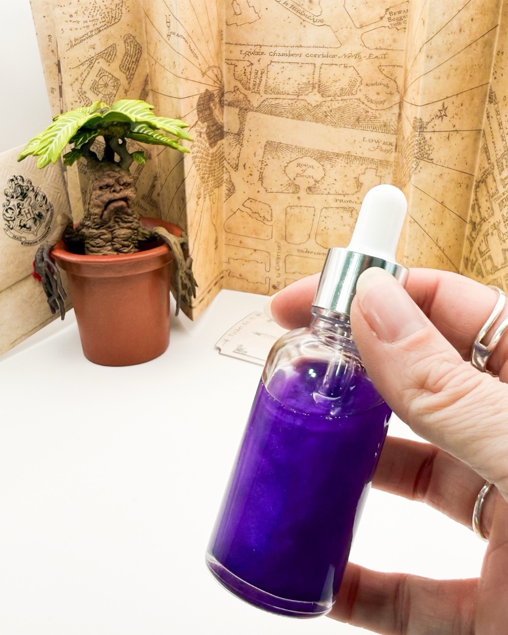 Chaque potion est fabriquée à la main, ce qui peut entrainer de légères variations de couleur, de forme ou d’aspect d’un modèle à l’autre. C’est ce qui rend chaque potion unique et témoigne de son authenticité artisanale.